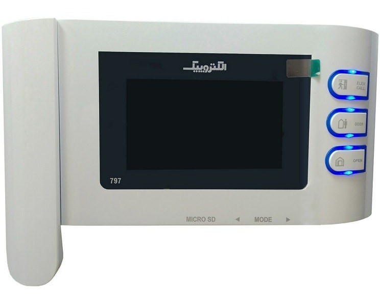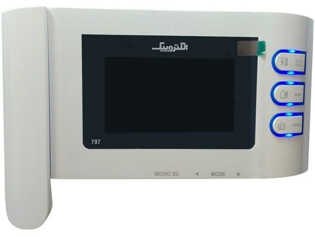 این آیفون تصویری از نظر ویژگی های فنی و ظاهری متفاوت و منحصر به فردش توجه مشتریان زیادی را به خود جلب کرده است .طراحی ظاهری این محصول یکی از مواردیست که این آیفون را از بقیه دربازکن ها متمایز کرده است.دو طرف مانیتور از سمت راست وچپ حالت خمیده به خود گرفته و گوشی که در سمت چپ آیفون قرار دارد نیز در همان قسمت تحت زاویه قرار گرفته است.دربازکن تصویری مدل 797 سه دکمه غیر لمسی دارد که به صورت عمودی طراحی شده است.کاربرد این دکمه ها به ترتیب از بالا به پایین برای فراخوانی آسانسور،روشن کردن صفحه مانیتور و دوربین پنل جلو درب و یا دوربین مداربسته و آخرین دکمه جهت باز کردن درب ساختمان.قسمت پایین صفحه دو گزینه به نام های MODE و MICRO SD قرار دارد که برای حرکت در گزینه های منو و مشاهده عکس های گرفته شده در حافظه خارجی استفاده میشود . با بدنه محصول از جنس پلاستیک فشرده مقاومت بالا در برابر ضربه و مانیتور آیفون تصویری الکتروپیک از تکنولوژی LCD-TFT در دو رنگ سفید و مشکی ارائه شده است.نبود امکانات اضافی مانند صفحه کلید و مانیتور لمسی،تغییر صدای زنگ ،ارتباط داخلی و نگهبانی باعث شده است قیمت این محصول بسیار مناسب و مقرون به صرفه باشد.در ادامه به چند ویژگی آیفون 797 میپردازیم: قابلیت ضبط تصویر قابلیت تنظیم میزان صدای زنگ قابلیت افزودن گوشی موازی یا صوتی قابلیت اتصال به 2 پنل و دوربین