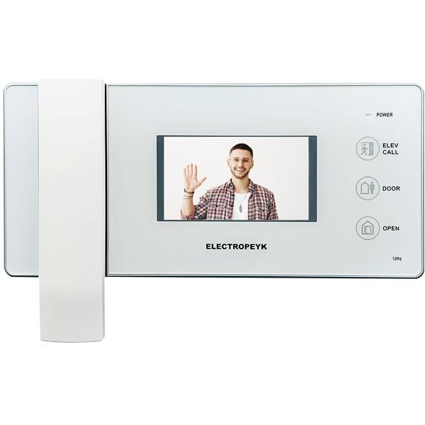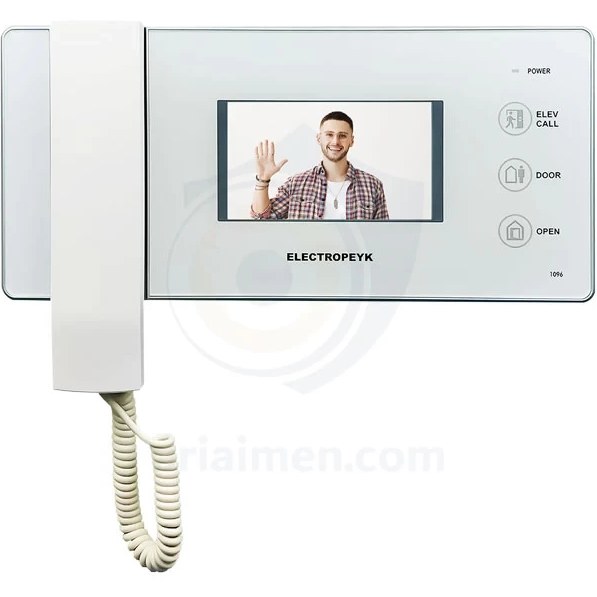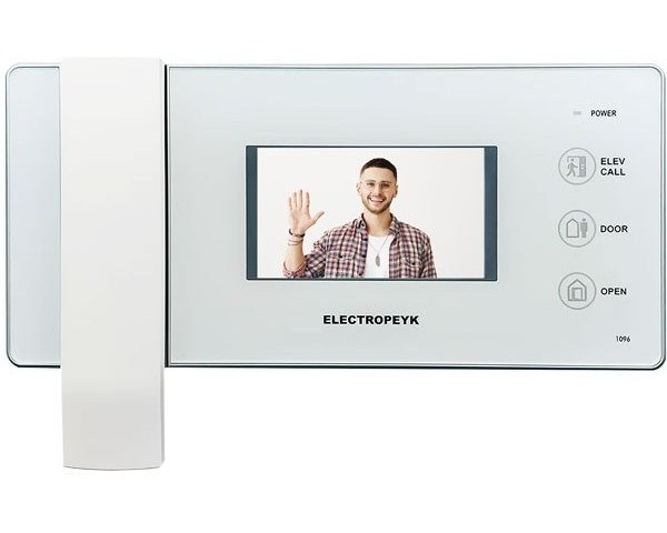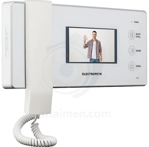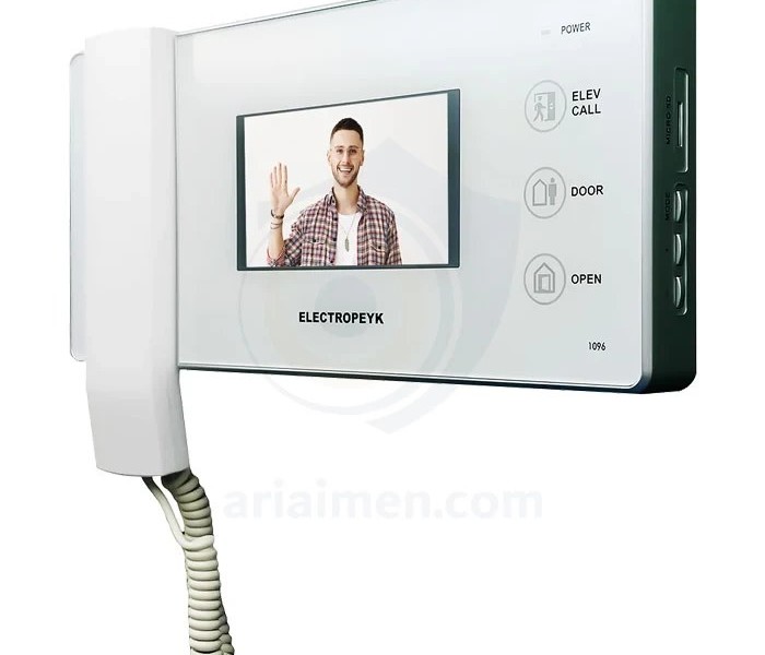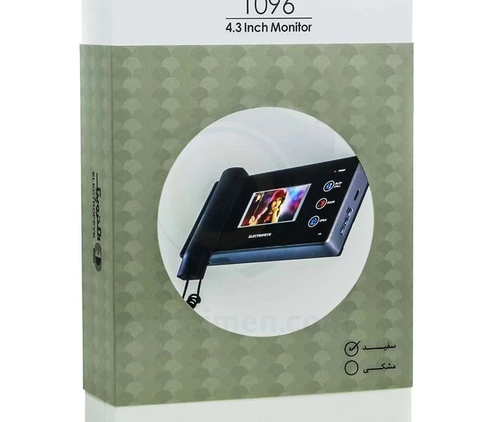 آیفون تصویری الکتروپیک مدل 1096 4.3 اینچ یکی از محصولات ردهی متوسط، شرکت الکتروپیک میباشد، که با طراحی بسیار زیبا و خاص توجه بسیاری از خریداران و مشتریان آیفونهای تصویری را به خود جلب کرده است. این مانیتور تصویری دارای صفحه نمایش 4.3 اینچی و صفحه کلید لمسی بوده و در دو رنگ سفید و مشکی تولید و عرضه میشود. مانیتور مدل ۱۰۹۶ دارای حافظه داخلی است و قابلیت افزودن حافظه جانبی تا ۱۶ گیگا بایت با کارت (SD)را نیز دارد. زنگ آن به صورت ملودی است و ۱۰ ملودی زیبا و متفاوت دارد که میتوان یک از آنها را برگزنید. همچنین از دو زبان فارسی و انگلیسی پشتیبانی میکند، که برای افرادی که با زبان انگلیسی آشنایی ندارند، این امکان مناسب است. آیفون های تصویری تاثیر بسزایی در ایجاد امنیت منزل و یا ساختمان اداری دارد. شرکت الکتروپیک با تجربه ای که در زمینه ساخت آیفون تصویری ایرانی دارد، محصولات متنوع با امکانات مختلفی را روانه بازار کرده است. یکی از این محصولات آیفون تصویری الکتروپیک مدل 1096 می باشد که می خواهیم در ادامه مشخصات فنی و ظاهری آن را بررسی کنیم. آیفون تصویری 1096 الکتروپیک ، مجموعه ای از امکانات کاربردی و متنوع را در خود جای داده است. ابتدا باید به طراحی زیبا و با کیفیت این آیفون تصویری از شرکت الکتروپیک، اشاره کرد. آیفون تصویری الکتروپیک 1096، در دو رنگ مشکی و سفید و بدنه دستگاه نیز از جنس ABS یعنی آنتی استاتیک ساخته شده است. ویژگی ABS موجب می شود تا رنگ بدنه دستگاه، بعد از گذشت زمان نیز همچنان کیفیت خود را حفظ نماید. آیفون تصویری الکتروپیک مدل 1096، به فناوری SMT مجهز گردیده است. به لطف این فناوری، از سیم بندی اضافی در نصب قطعات بر روی برد الکترونیکی جلوگیری شده و به صورت سطح به سطح این اتصال برقرار می گردد. بنابراین هزینه و قیمت آیفون تصویری کاهش می یابد. استفاده از یک صفحه نمایش رنگی به اندازه 3/4 اینچ را، انتخابی معقول برای آیفون تصویری 1096 الکتروپیک می توان تلقی کرد.