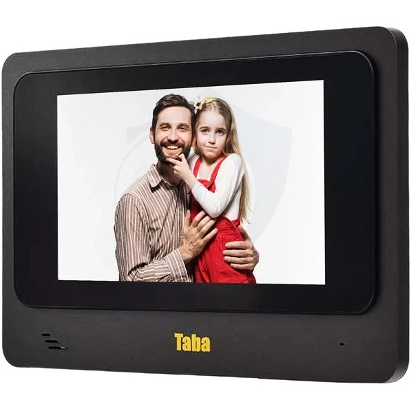 آیفون تصویری تابا با صفحه نمایش کاملا لمسی (TOUCH SCREEN)، 7 اینچی با دور حاشیه سفید طراحی شده است. در پایین ترین قسمت مانیتور، شما شاهد هشت دکمه از راست به چپ: جهت باز کردن درب، دکمه برقراری ارتباط و مکالمه، دکمه خروج، بزرگنمایی تصاویر، تنظیمات،ضبط ویدیو،ارتباط بین واحدها و صفحه اصلی نمایش هستید.