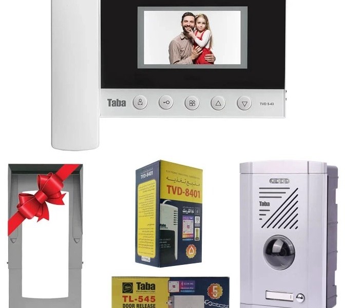 آیفون تصویری تابا مدل TVD5-43یکی از محصولات تابا می باشد. شرکت تابا از جمله شرکت هایی است که بی وقفه به دنبال تغییر و تحول در تولید و طراحی محصولات خود بوده است و هر از چند گاهی توسط طراحان با استعداد خود و درک نیاز مشتریانش توانسته محصولات جدیدی را روانه بازار است کند، که از این بابت به جرات می توان گفت در میان رقبای خود بسیار موفق عمل کرده است، آیفون تصویری تابا مدل TVD5-43 یکی از جدیدترین و در عین حال زیباترین محصولات تابا الکترونیک بوده است که قطعا از لحاظ ظاهری نظر مشکل پسندترین مشتریان آیفون تصویری را به خود جلب می کند، یکی از تفاوت های بسیار بارز این مدل با سایر مدل های آیفون تصویری تابا مسطح بودن بدنه این سری از محصولات تابا است که در عین سادگی ظاهریش، بسیار خوش فرم طراحی شده است که می تواند اولین گزینه برای افرادی باشد که به دنبال یک محصول شیک و منحصر به فرد برای زیباتر شدن نمای خانه شان هستند باشد.