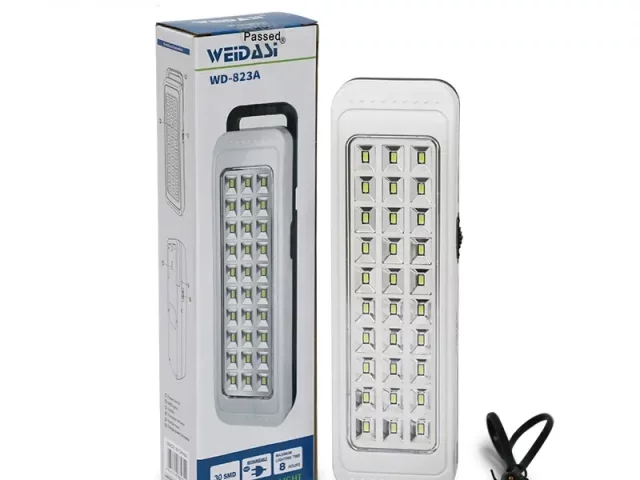 چراغ اضطراری ویداسی مدل WD-823A، یکی از بهترین گزینهها برای استفاده در شرایط اضطراری و قطع برق است. این چراغ با طراحی زیبا و کارآمد، توانسته است توجه بسیاری از کاربران را به خود جلب کند. چراغ اضطراری ویداسی مدل ۸۲۳ دارای ۳۰ لامپ LED است که نوردهی بسیار خوبی را فراهم میکند. این چراغ دارای دو حالت نوردهی کم نور و پرنور است که میتوان بسته به نیاز از آن استفاده کرد.یکی از ویژگیهای برجسته چراغ اضطراری ویداسی WD-823A، باتری داخلی آن است که قابلیت شارژ مجدد دارد. این باتری با ظرفیت ۱۰۰۰ میلیآمپر ساعت، میتواند تا ۸ ساعت نوردهی مداوم را در حالت کم نور و تا ۴ ساعت در حالت پرنور فراهم کند. همچنین، این چراغ دارای قابلیت شارژ با برق شهری و باتری است که امکان استفاده در هر شرایطی را فراهم میکند.این مدل ۸۲۳ با وزن سبک و ابعاد مناسب، به راحتی قابل حمل است و میتوان آن را در کمپینگ، کوهنوردی، مسافرت و حتی در منزل استفاده کرد. این چراغ با بدنهای از جنس پلاستیک مقاوم، در برابر ضربه و آب مقاوم است و میتواند در شرایط مختلف جوی به خوبی عمل کند.